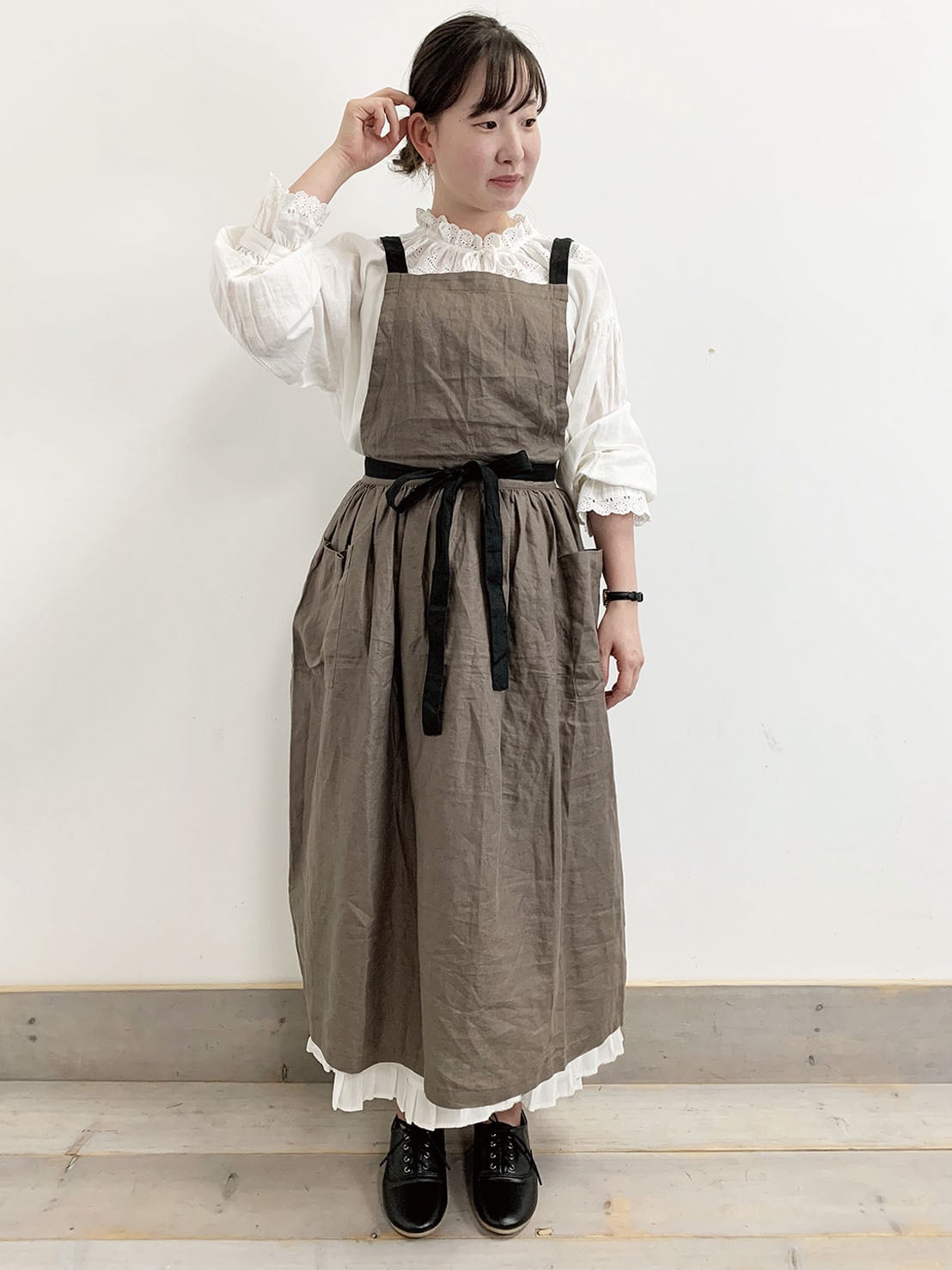 お買い物やちょっとしたお出かけにも使えるワンピースのようなエプロンです。